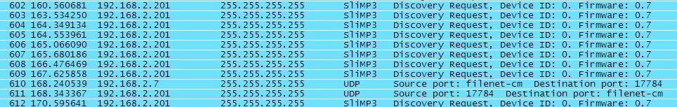 Sorry post 10 was truncated. [09-03-01 22:24:18.9148] Slim::Networking::Discovery::gotDiscoveryRequest (99) It's a Squeezebox [09-03-01 22:24:18.9156] Slim::Networking::Discovery::serverHostname (53) calculated oreillymj-desk length: 17 [09-03-01 22:24:18.9169] Slim::Networking::Discovery::gotDiscoveryRequest (110) gotDiscoveryRequest: Sent discovery response. [09-03-01 22:24:19.5613] Slim::Networking::Discovery::gotDiscoveryRequest (87) gotDiscoveryRequest: deviceid = 7, revision = 3.12, MAC = 00:04:20:16:01:b8 [09-03-01 22:24:22.0232] Slim::Networking::Discovery::gotTLVRequest (194) sending response [09-03-01 22:24:22.0241] Slim::Networking::Discovery::Server::gotTLVResponse (161) discovery response packet: [09-03-01 22:24:23.1723] Slim::Networking::Slimproto::slimproto_close (243) connection closed [09-03-01 22:24:24.4533] Slim::Networking::Discovery::gotDiscoveryRequest (87) gotDiscoveryRequest: deviceid = 7, revision = 3.12, MAC = 00:04:20:16:01:b8 [09-03-01 22:24:27.4606] Slim::Networking::Discovery::gotDiscoveryRequest (87) gotDiscoveryRequest: deviceid = 7, revision = 3.12, MAC = 00:04:20:16:01:b8 [09-03-01 22:24:27.4612] Slim::Networking::Discovery::gotDiscoveryRequest (99) It's a Squeezebox [09-03-01 22:24:27.4617] Slim::Networking::Discovery::serverHostname (53) calculated oreillymj-desk length: 17 [09-03-01 22:24:27.4626] Slim::Networking::Discovery::gotDiscoveryRequest (110) gotDiscoveryRequest: Sent discovery response. [09-03-01 22:24:28.1556] Slim::Networking::Slimproto::slimproto_accept (187) Accepted connection from: [192.168.2.201:31001] [09-03-01 22:24:28.1562] Slim::Networking::Slimproto::slimproto_accept (190) Setting timer in 5 seconds to close bogus connection [09-03-01 22:24:28.1573] Slim::Networking::Slimproto::client_readable (427) Error reading from client: Unknown error [09-03-01 22:24:28.1578] Slim::Networking::Slimproto::slimproto_close (243) connection closed [09-03-01 22:24:28.2055] Slim::Networking::Discovery::gotDiscoveryRequest (87) gotDiscoveryRequest: deviceid = 7, revision = 3.12, MAC = 00:04:20:16:01:b8 [09-03-01 22:24:28.2060] Slim::Networking::Discovery::gotDiscoveryRequest (99) It's a Squeezebox [09-03-01 22:24:28.2066] Slim::Networking::Discovery::serverHostname (53) calculated oreillymj-desk [09-03-01 22:24:37.4524] Slim::Networking::Discovery::gotDiscoveryRequest (87) gotDiscoveryRequest: deviceid = 7, revision = 3.12, MAC = 00:04:20:16:01:b8 [09-03-01 22:24:37.4530] Slim::Networking::Discovery::gotDiscoveryRequest (99) It's a Squeezebox [09-03-01 22:24:37.4535] Slim::Networking::Discovery::serverHostname (53) calculated oreillymj-desk length: 17 [09-03-01 22:24:37.4544] Slim::Networking::Discovery::gotDiscoveryRequest (110) gotDiscoveryRequest: Sent discovery response. [09-03-01 22:24:38.1657] Slim::Networking::Slimproto::slimproto_accept (187) Accepted connection from: [192.168.2.201:31002] [09-03-01 22:24:38.1667] Slim::Networking::Slimproto::slimproto_accept (190) Setting timer in 5 seconds to close bogus connection [09-03-01 22:24:38.1680] Slim::Networking::Slimproto::client_readable (427) Error reading from client: Unknown error [09-03-01 22:24:38.1688] Slim::Networking::Slimproto::slimproto_close (243) connection closed [09-03-01 22:24:38.1829] Slim::Networking::Slimproto::slimproto_accept (187) Accepted connection from: [192.168.2.201:31003] [09-03-01 22:24:38.1837] Slim::Networking::Slimproto::slimproto_accept (190) Setting timer in 5 seconds to close bogus connection [09-03-01 22:24:38.1851] Slim::Networking::Slimproto::_hello_handler (946) Killing bogus player timer. [09-03-01 22:24:38.1873] Slim::Networking::Slimproto::_hello_handler (980) Squeezebox says hello: Deviceid: 7 revision: 60 mac: 00:04:20:16:01:b8 uuid: f7977586ed9da685c379841e359b1a8b bitmapped: 32768 reconnect: 0 wlan_channellist: 0000 lang: EN [09-03-01 22:24:38.1890] Slim::Networking::Slimproto::_hello_handler (992) Squeezebox also says: bytes_received: 0 [09-03-01 22:24:38.1903] Slim::Networking::Slimproto::_hello_handler (1171) Hello from existing client: 00:04:20:16:01:b8 on ipport: 192.168.2.201:31003 [09-03-01 22:24:38.1926] Slim::Player::Squeezebox::stream (934) strm-q [09-03-01 22:24:38.1955] Slim::Player::Squeezebox::stream (934) strm-q [09-03-01 22:24:38.2129] Slim::Networking::Discovery::gotTLVRequest (194) sending response [09-03-01 22:24:38.2142] Slim::Networking::Discovery::Server::gotTLVResponse (161) discovery response packet: