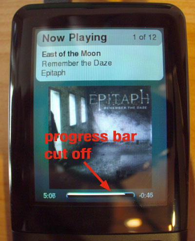 Created attachment 4951 [details] Jive r4824: Progress bar "Now Playing" Just updated jive to r4824, it exposes some display issues with the progress bar and the volume bar. I include some shots I took from the actual Controller with a camera (not too good quality but show what I mean).