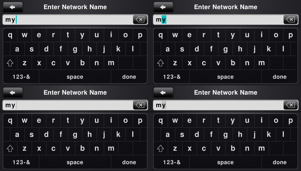Jim: if you use the remote to enter text, then there is an overwrite mode. Try this by using your IR remote and scroll up/down when on the text entry screen. Also, if we decide to add drag-to-select text (like on a computer gui), then the cursor becomes a highlight.