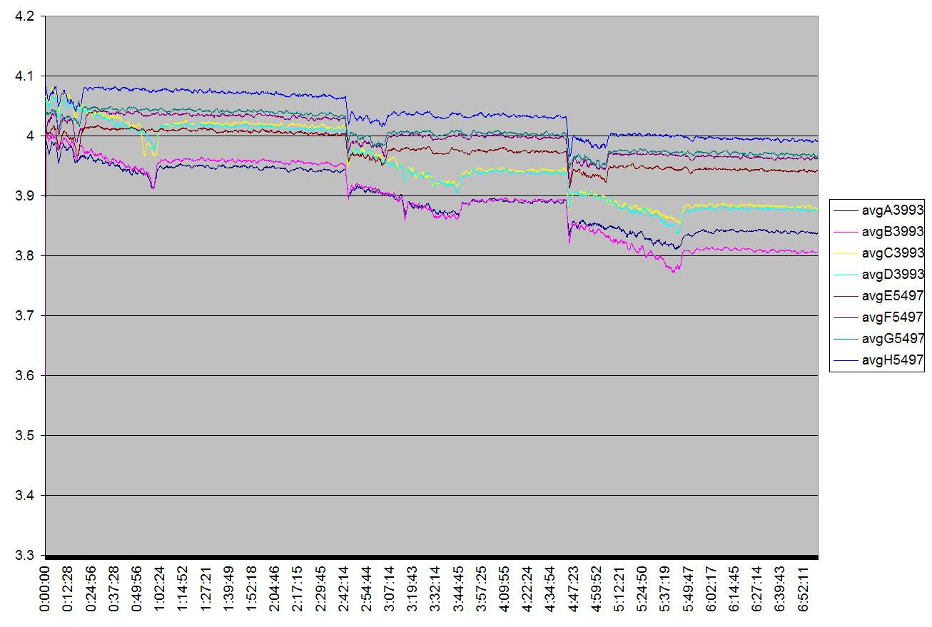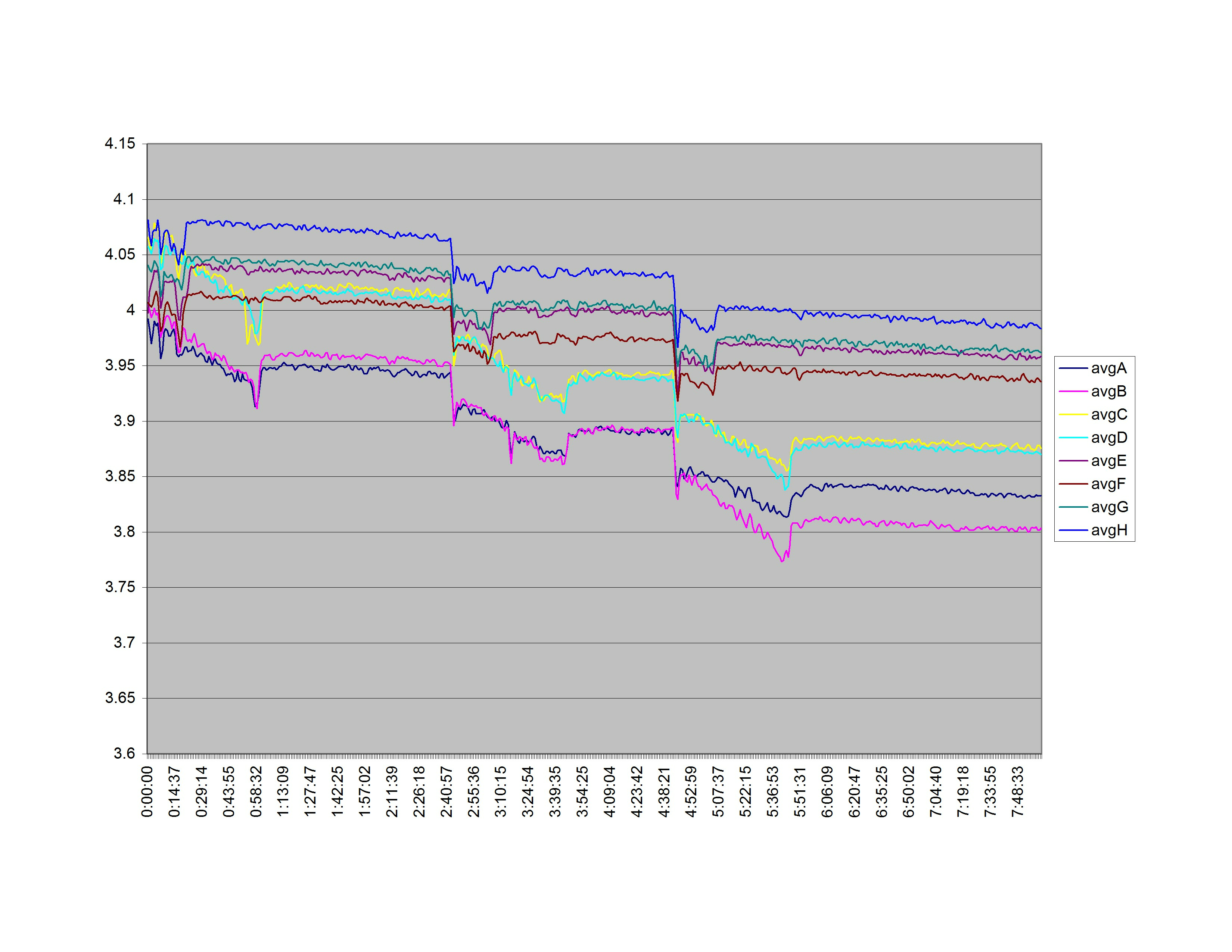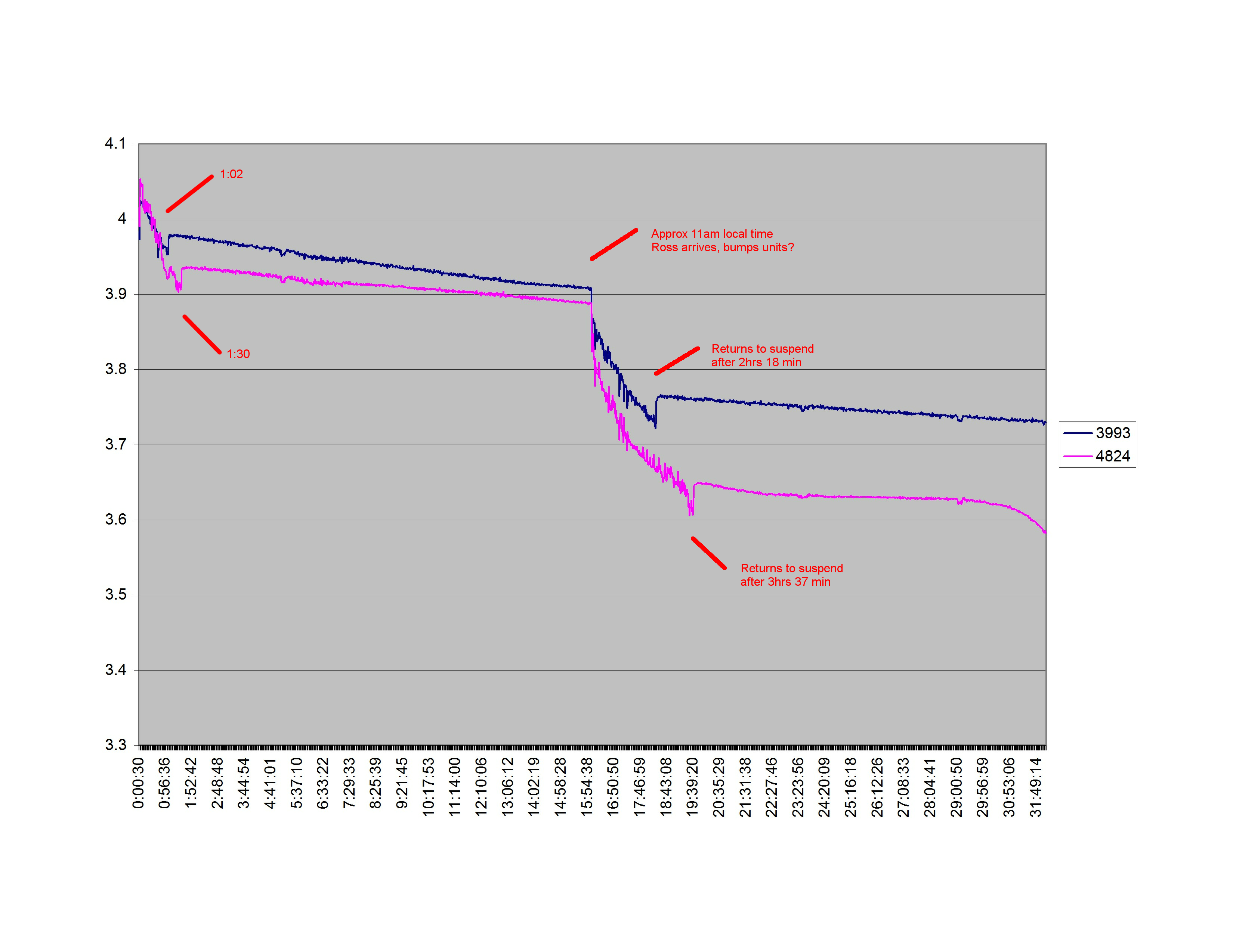 Created attachment 5184 [details] crappy image of all 8 controllers over 114 hours I woke the Controllers roughly every 2 hours for the first two days, then over the weekend let them die. The first 4 are 3993, second 4 are 5497. Better data tomorrow.