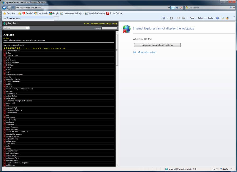 SqueezeCenter Interface and IE8 problem