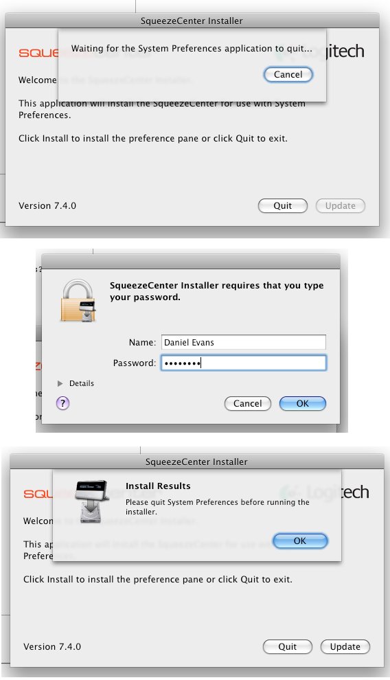 Created attachment 5300 [details] 3 screenshots illustrating the error I am reopening this bug. I saw this again this morning trying to update build 26738. This was after a fresh boot. Screenshot attached showing the sequence that appears: 1) I've clicked Update, 2) Prefs has closed and I enter password, 3) Update fails. Let me know what server log options you'd like on to get details on this?