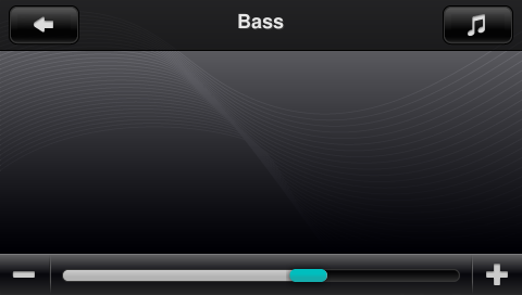 We've implemented a (rather nice) adjustable scroll bar on the "brightness" screen. We should also add this template to bass, treble, and line in level settings screens (they currently use the green progress-meter style). CC-ing noah in case assets are needed.
