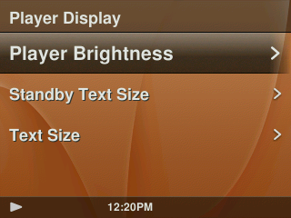 OK, now I'm confused. There is no "Player Display" menu I'm aware of, and "brightness" is in a different menu from "text size" (which is supposed to be in the "screen" submenu).