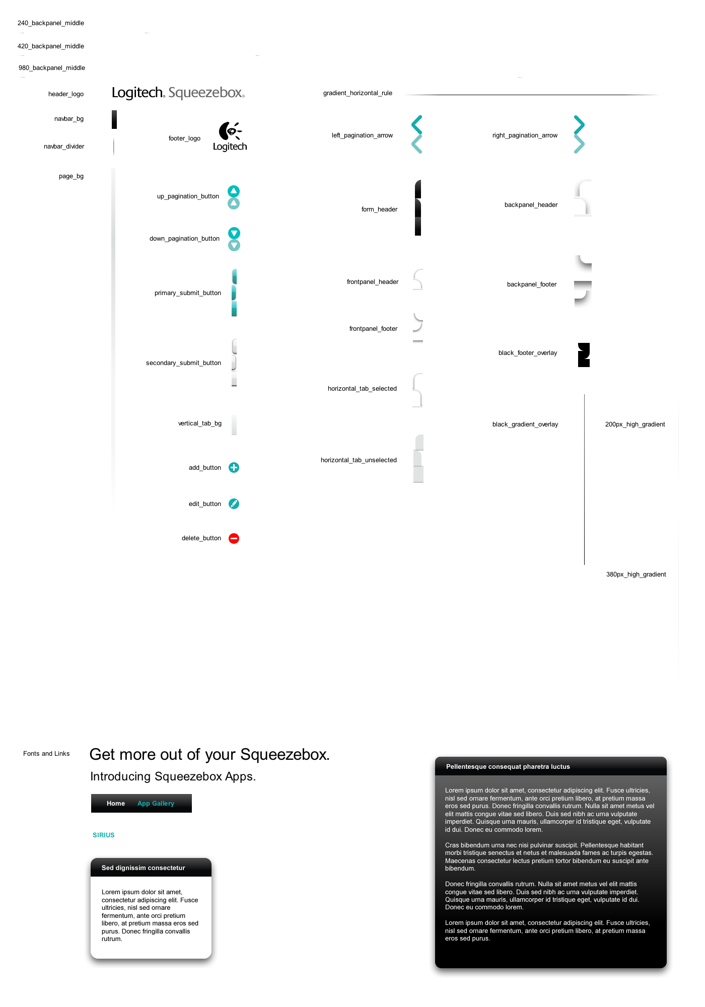 Need to provide a full set of proper graphics assets, including sprites, icons, gradients, containers, buttons, etc.