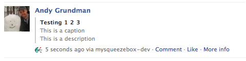 Created attachment 5777 [details] Sample post using attachment OK, what this does is let you create a bold title and a second/third line caption/description. Right now I have the message posted as the title and no caption, so it will appear bold and looks a little strange. Here is a screenshot of all 3 items.