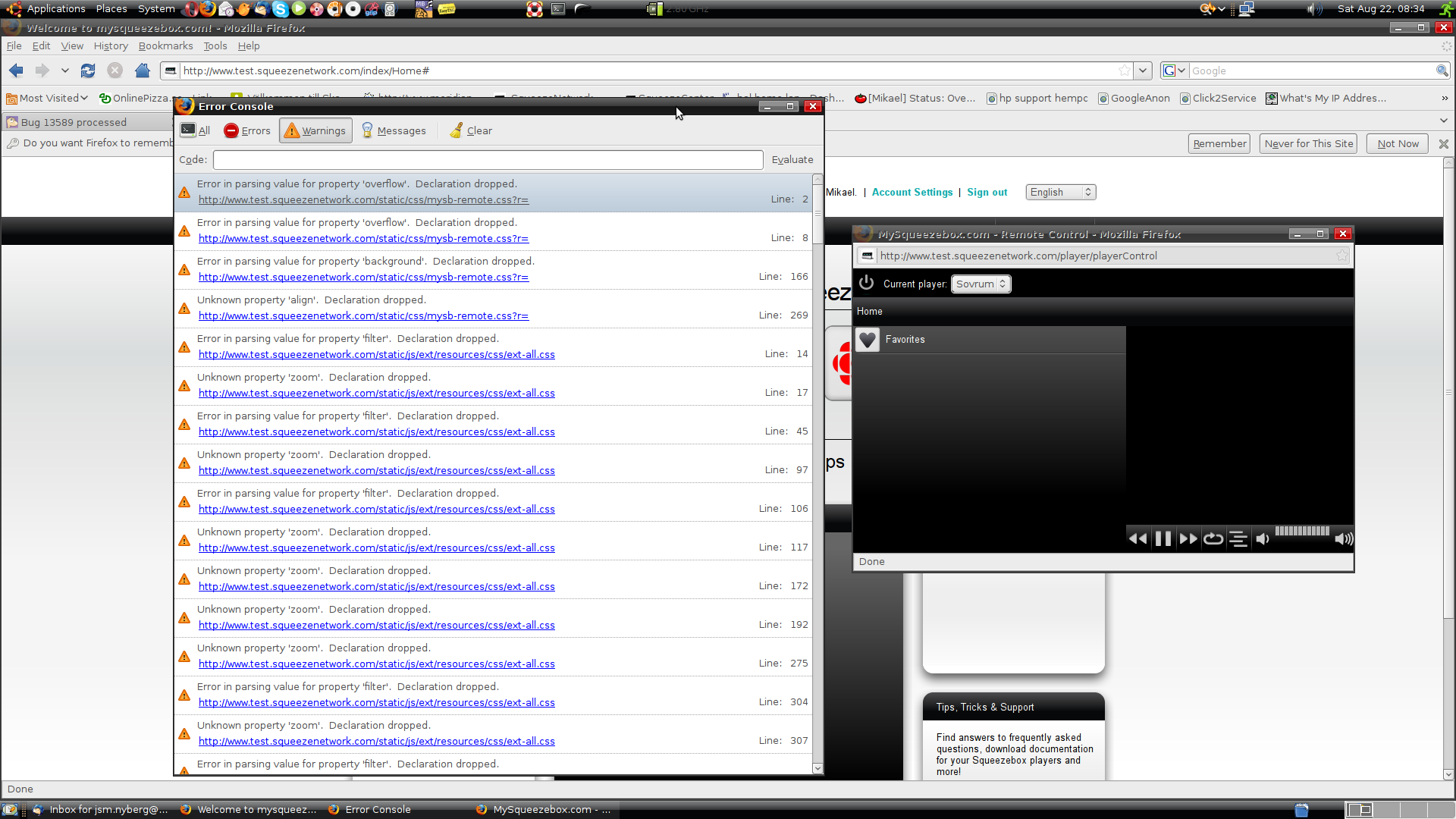 If i open FF's error console end then launch the remote controll i get filled with a lot of warnings, hundreds of them. for some reason you can not copy the text in that console, I'll do another screen dump