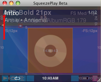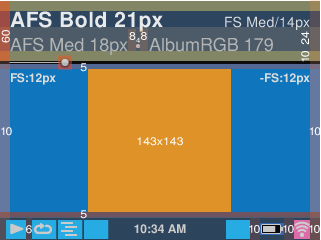 *Baby* 10px padding - 245px for track title - 8px padding - 47px for X of Y (fixed width) - 10px padding -reducing the 10px will impact the L/R viewing angle *Controller* 8px padding - 169px for track title - 8px padding - 47px for X of Y (fixed width) - 8px padding -note that elapsed time would appear below text and not replace X of Y for this skin -if possible for internet radio stations we would not truncate the the top track title text (this can be an enhancement for a later release). By using a 47px fixed width we get *999/1... *and *1:59:59* using a FS Medium *14px* font size. Any further info. would need to scale down. In general: FS Medium fonts = 12px ht is the MIN FS Bold fonts = 10px ht is the MIN For small playlist, etc. can we switch displaying the X of Y from 1/2 to *01/02*? This will also help even out the padding for MAX track titles and MIN X of Y. I think that this combined with the fixed width will help significantly. For now I do not want to increase the X of Y font beyond 14px MAX. Any larger and the template hierarchy gets thrown off. Please let me know if you need anything further...