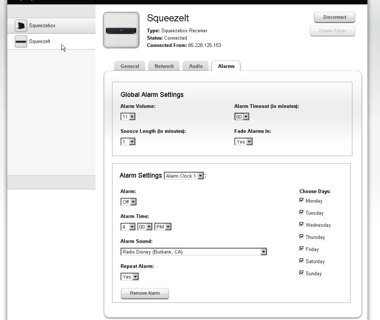 Created attachment 6045 [details] Pic of the MySB interface for the Duet player alarms tab Note that: * Alarms can only be set in AM/PM time * There is no "Display" tab to change to 24-hour clock