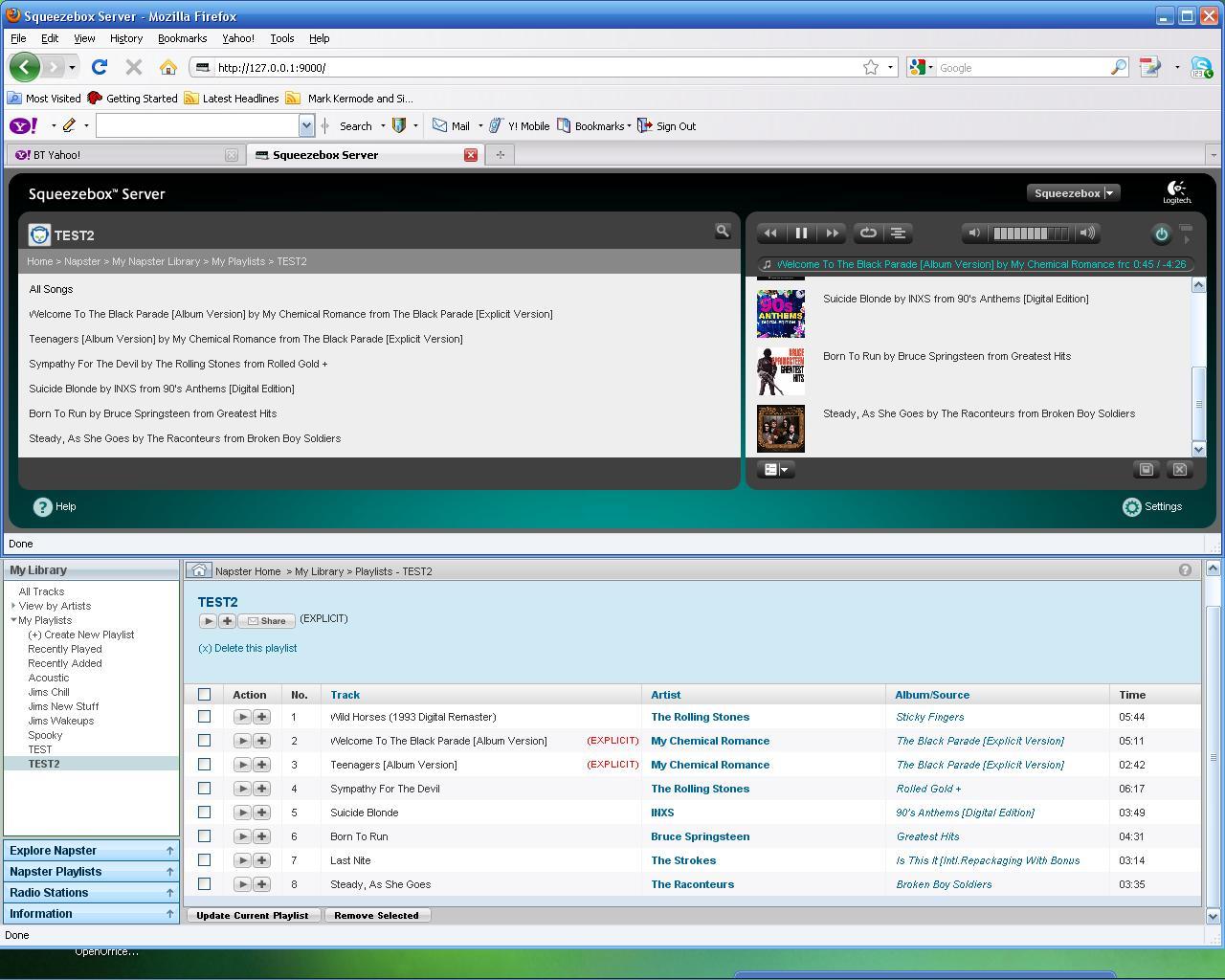 All play lists I've created in NAPSTER have missing tracks when played on the SB NAPSTER>MY NAPSTER LIB>MY PLAYLIST. Usually about 10-20% of the tracks go missing. The tracks are available in MY LIBRARY but simply missing off the Playlist and can not be added. Tried removing them and adding again but does not work. To recreate try adding the NAPSTER Acoustic playlist... NAPSTER PLAYLIST>PLAYLIST BY CATEGORY>DINNER PARTY>ACCOUSTIC The view the playlist via SB or SB server web interface and note 3 or 4 songs missing (TING TINGs, ROLLING STONES, DANIEL BEDDINGFIELD) Alternatively set up your own play list and add BE THE ONE (NAPSTER SESSION) by the TING TINGs plus some other tracks... BE THE ONE is not on playlist when played via SB. Above just example it's impacting a large number of tracks (10-20% i'd say)
