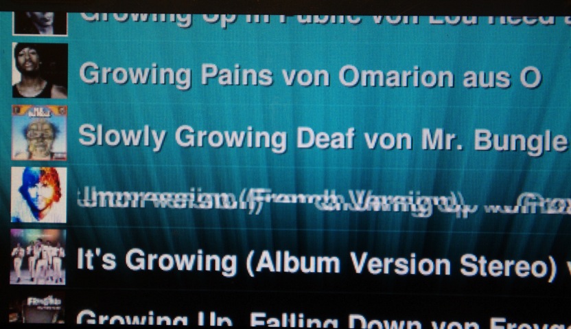 When a showBriefly popup is shown, and an element which is only partly hidden by the popup starts scrolling, only the visible part will scroll. The hidden part will start scrolling as soon as the popup is closed. But as the lower part already has scrolled a bit, the line is horizontally split in two. I can only reproduce this in one particular menu: Deezer Search. Maybe it's related to its using icons, and long, scrolling text. - select an item which is slightly below the center of the screen - press & hold -> add to playlist - showBriefly telling you about the add action will be shown - if the element starts scrolling and is partly hidden by the popup you'll see that only part of it is scrolling - as the popup disappears the remainder start scrolling too, but with an offset of a few pixels