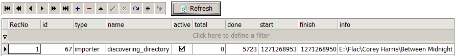 Created attachment 6773 [details] SQLite progress table Yes on the negative time. In this instance I'm running a new & changed scan from the web interface with no new content. Stays at -3 seconds and doesn't change during the course of the discovery pass. See the attached shot of the SQLite table during the scan, which may help explain it - it's the data, not a formatting error. The finish time is correct (1271269007, 54 seconds) only when the discovery pass completes. Will do more testing.