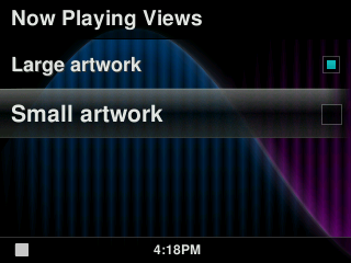 on Controller and Radio, Large Artwork and Small Artwork are two different Now Playing styles or "views". on Squeezebox Touch, there are more-- Artwork + Text, Artwork only, Text only, and two visualizers (if local player) different users want different sets of these views to be available. I propose we allow configuration of the set that's available to toggle through. Default for any given skin is all enabled. I have a patch already, and I will also write up some EVT tests for this feature before the bug is considered complete.