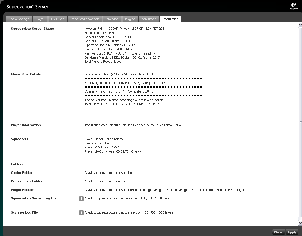 I just tried to get 7.6 up and running on a new system and find this in the logs: Slim::Utils::Scanner::Local::rescan (138) Discovering files in /mnt/slugpublic/Media/Playlists [10-04-11 12:39:43.0181] Slim::Utils::Scanner::Local::__ANON__ (209) Removing deleted files (0) [10-04-11 12:39:43.0191] Slim::Utils::Scanner::Local::__ANON__ (262) Scanning new files (0) [10-04-11 12:39:43.0200] Slim::Utils::Scanner::Local::__ANON__ (315) Rescanning changed files (0) Now "/mnt/slugpublic/Media/Playlists" is not my Music folder (and not set as such, the music folder is "mnt/slugpublic/Media" but my Playlist folder. When I change the Playlist folder to also point to the root media folder scanning works fine.
