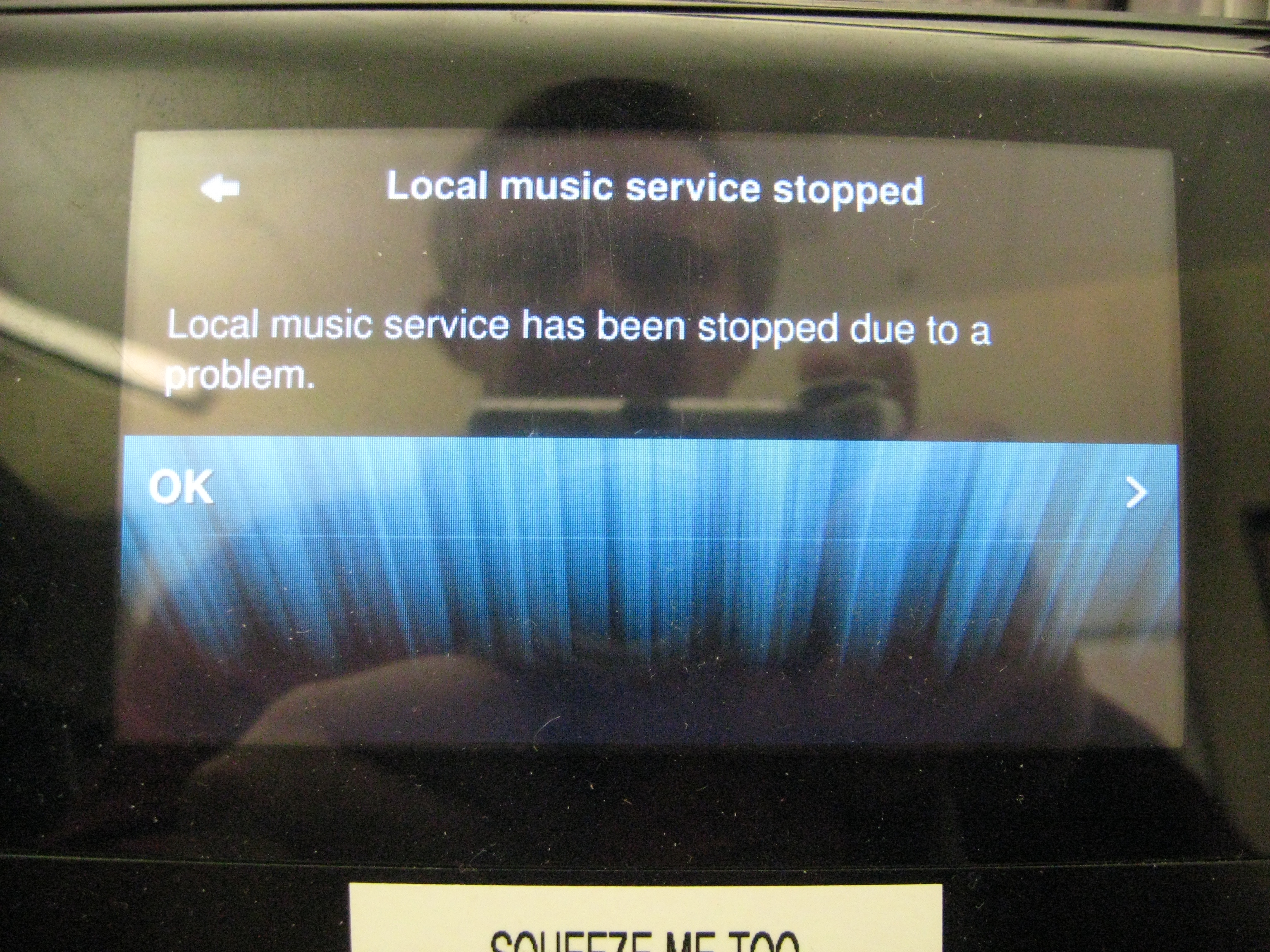 Created attachment 7241 [details] Music service error message After the image viewer displays the loading screen between images for awhile it will eventually shut down with an error message "Local music service has been stopped due to a problem" when you select OK the unit returns to the Home menu. not the "off" state where it was when displaying the Flicker images.