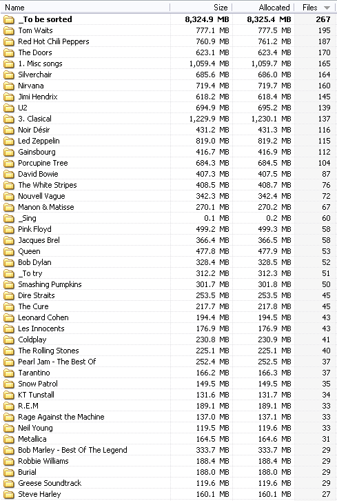 > As I mentioned above it is definitely related to the number of files in the > root music folder. I'm now a bit confused, as in reply to Jim you said that your files where organized in sub-folders. How many files and folders do you have in the root music folder? Root only, no sub-folder's content. 4000 definitely shouldn't be a problem if they're well organized in sub-folders. Many of us have tens of thousands of tracks. But 4000 in one folder would be a problem.