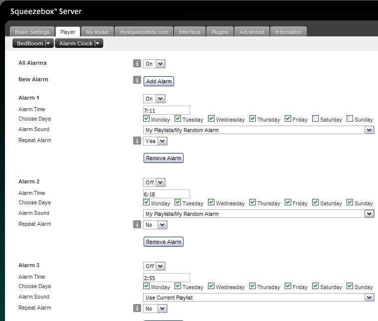 Created attachment 6916 [details] Screen shot of Alarm settings The Alarm in WEB interface won't allow to choose am or pm for players, when you set the Time format to h:mm (12h) in the Interface options. The Alarm seems to always go to AM no matter even if you type PM, the players i have have AM PM options. I have th SB3 and Squeezebox Boom.