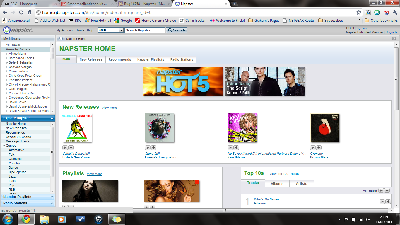 > As requested napster library screenshot Thanks Graham. It looks as if Napster/UK was using the same web UI as Germany.