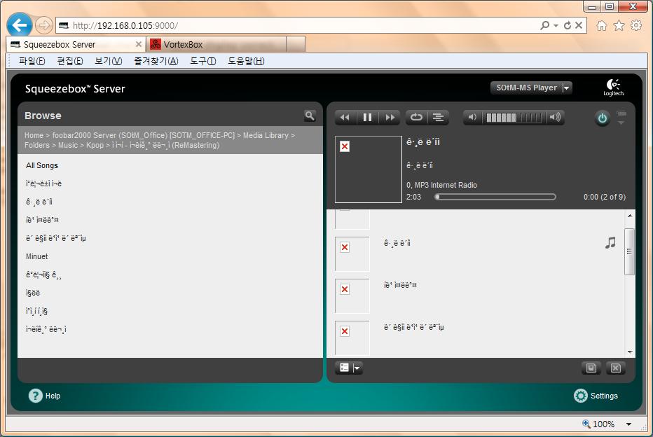 Problem Korean character display. SqueezeBox version is V7.6.1 After enable UPnP Client in Advance-Network setting, UPnP server list appear in My Music. All Korean character(folder name and song name) does not display correct when browsing UPnP server. I test with windows UPnP server(windows 7 x64 Korean and windows vista Korean) and Foobar2000 UPnP server. But local storage(HDD) Korean character display correct. Another problem is audio does not play with windows UPnP server, but Foobar2000 UPnP server plays well.