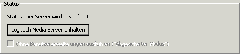 Please have a look at http://logitech-en-emea.custhelp.com/app/account/questions/detail/i_id/8216667 The most important points: Well there is another bug producing the following error: Slim::Networking::UDP::init (39) FATAL: There is already another copy of the Logitech Media Server running on this machine. (Only one usage of each socket address (protocol/network address/port) is normally permitted.) You can reproduced it as follows: - Start the logitech media server (in my case I've to do it in safe mode, because otherwise I cannot stop the server): The GUI freezes until the server is started - Click quickly multiple times (2-3x) on the "Stop logitech media server"-button: The GUI does not wait until the server is stopped, so it probably tries to restart the server with the second or third click... It would be nice if there would be a progress bar or a wait-cursor when the server is going to start or stop. Furthermore the start of logitech media server should not be done in the GUI-Thread (this is why the GUI freezes until the server is started). Sorry I'm a software engineer as well ;-) But the main critical issues remain... - The application works fine if I run it in safe mode (without user extensions) - The server can be started and stopped - The server can be killed with the process explorer or with the taskkill command - When running the server with user extensions, the - The squeezebox-boom loses the connection to the serer after an hour (that varies between some minutes or some hours...) - The server cannot be stopped - The server cannot be killed with the process explorer or with the taskkill command - After trying to stop the server the squeezebox-boom loses the connection to the server Some more informations when I try to kill the logitech media server (running with user extensions) with the taskkill command: - I make a lookup for the PID with the tasklist-command - I kill the logitech media server with the command "taskkill /f /pid 6488" (6488 as an example), this returns the following message: "SUCCESS: The process with PID 6488 has been terminated." - Then I list up all running processes again with the tasklist-command -> the process still exists! - Trying to kill the process a second time ends up with the following messages: "ERROR: The process with PID 6488 could not be terminated. Reason: There is no running instance of the task." - So the process is still somehow there (tasklist, process explorer and the logitech media server GUI recognize that ;-))