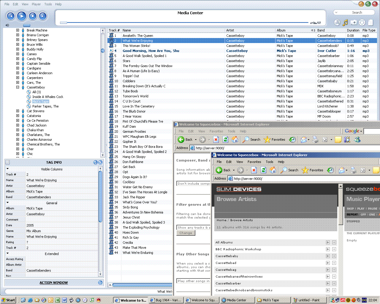 Created attachment 736 [details] To demonstrate band/various artists not working This shot shows - with Group Compilations switched on - This is a Jools Holland album with various people performing on it, so to demonstrate, I have put all the artists in each track - as individual artists - and you will see in the next attachment, the track information in Media Centre, which is a reliable tagging package. You will see in the SlimServer screen grab that each track has its own artist, so why isn't it showing as a Various Artist compilation ?