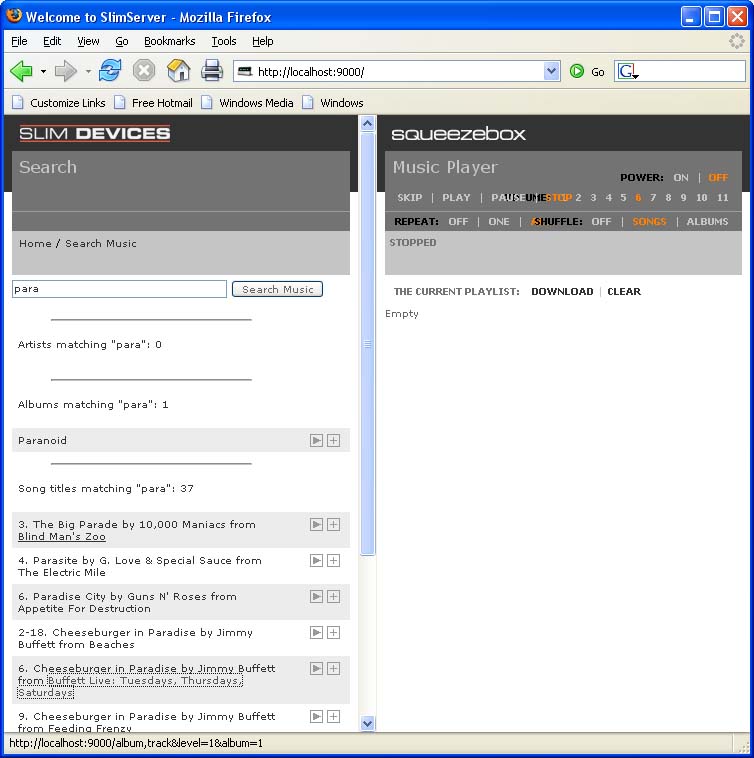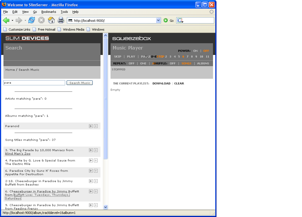 Yes, I have recently upgraded from 6.2.1 I've tried both IE 6.0 and FireFox 1.5 None of the albums in the search contain special characters, it actually happens on every album in the library. I've attached the source for the page and a screen shot, notice the url in the lower left. I get the correct URL when I hover over a song name or artist.