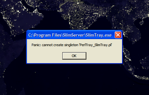A new case of this error. (tmid 4513) User sent in two screenshots, which I chopped into three smaller ones. 1. shows the error when he tried to install. he reinstalled and it did not have the error 2. shows the path to the setup executable 3. shows the error when he tries to run Slimserver details of system hardware: Intel CPU on Intel MB, dual-core D830 processor, latest version of XP,