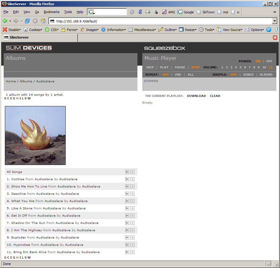 I don't have a 96-track album in my test data (yet.) When I tried to reproduce this with a 10-track album by setting the number of lines per page to something ridiculously small (i.e. 3) I got no pagebar at all. I'm happy to go back and work at reproducing jj's problem shortly, but I thought I'd go ahead and assign it to Dan to look at.