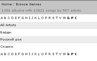 A problem exists with unicode (Cyrillic) genre listing in web UI. If I select "browse Genres", the english genre list appears in alphnumeric order, followed by the similary sorted cyrillic genre list. However, the same cyrillic genres also appear in the middle of the english genres. Attachments illustrate this. It appears that MP3 tracks are associated with the "correctly" placed cyrillic genres, while FLACs are listed under cyrillic genres that are placed in the middle of the english list. SlimServer Version: 6.3.0 - 8148 - Windows Server 2003 - EN - cp1251