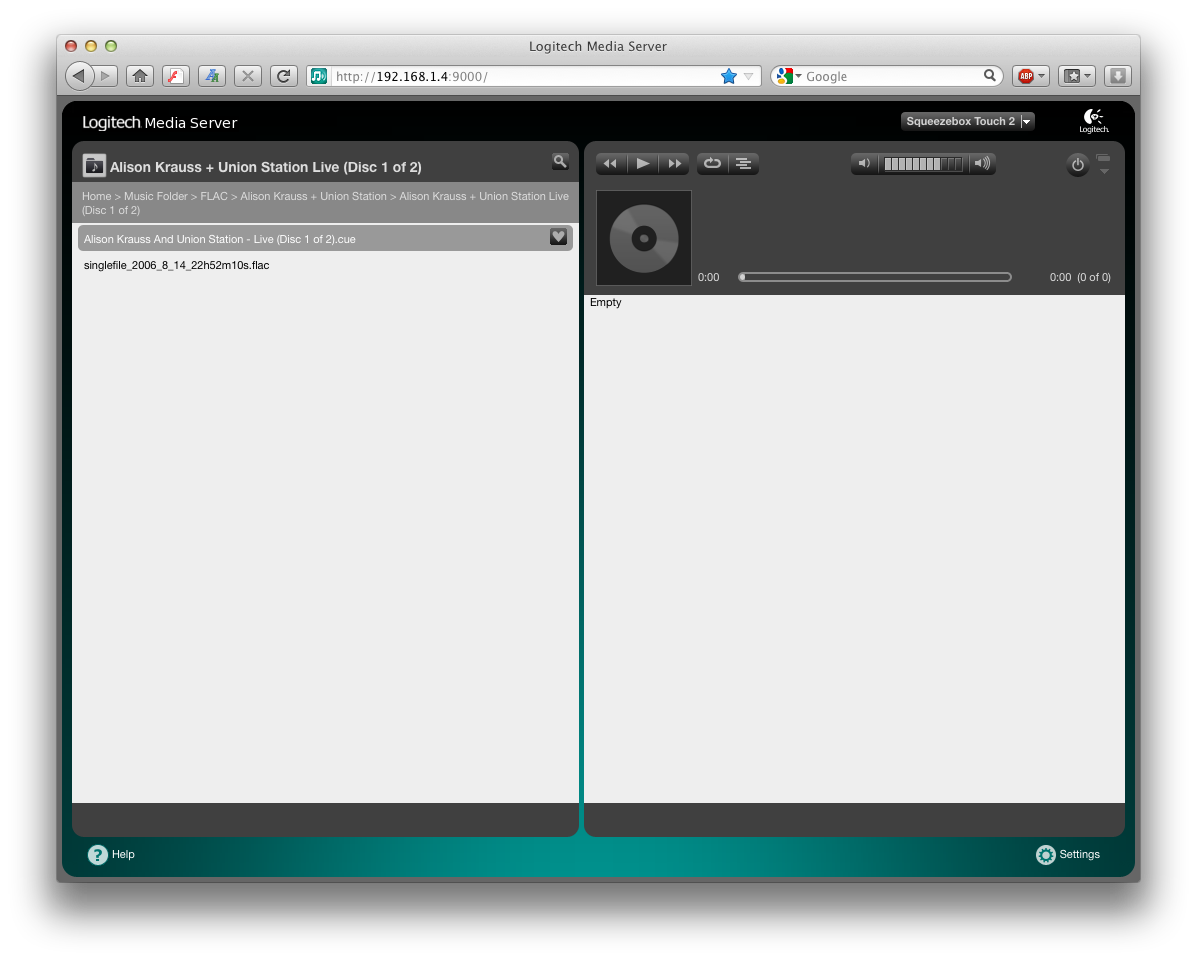 I experimented today with ripping a few cd's as a single flac file with external cue sheet using AUTOFLAC (EAC). Most discs are displayed correctly in the Albums view, however I am having trouble with one disc showing up as "No Album". When I click on it, I can see the file name, and when I click on that, I am taken to the properties page where it gives me details and shows me the location to the .flac file. I'm using SlimServer version 6.5.0. I've given the URL to the cue sheet that was created. I can take a screen shot if necessary. Please let me know.