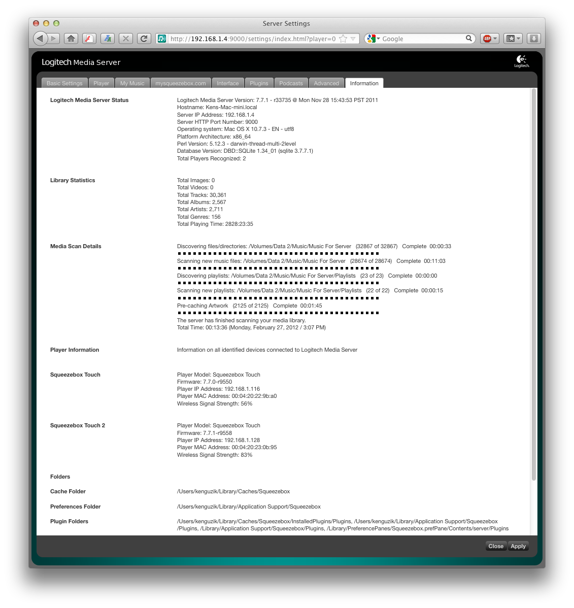 Created attachment 7634 [details] Screen shot of the server information tab