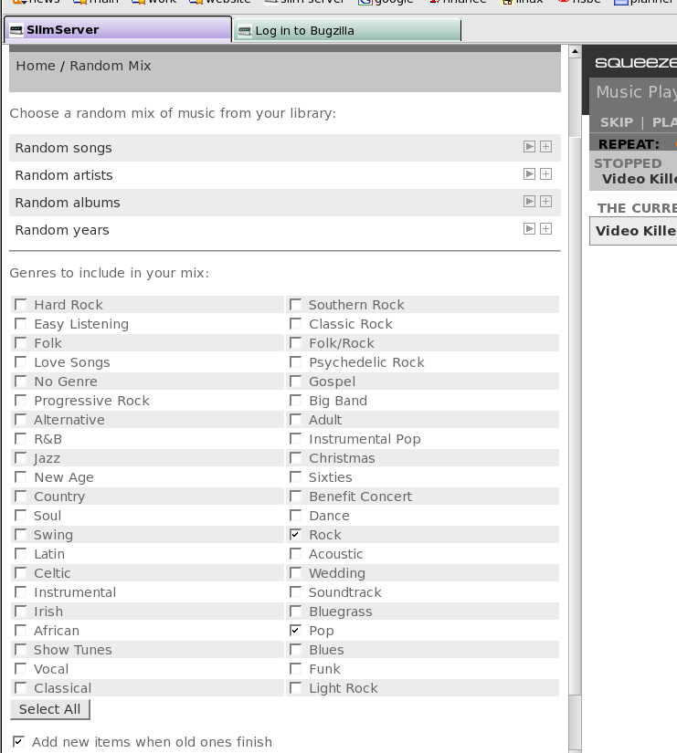After clicking the link for "Random Mix" the list of Genres does not appear in any sensible order. See attached screen shot.