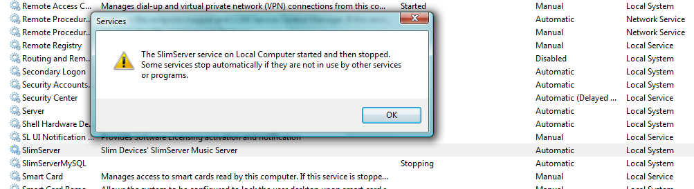 Slimserver does not start on Vista