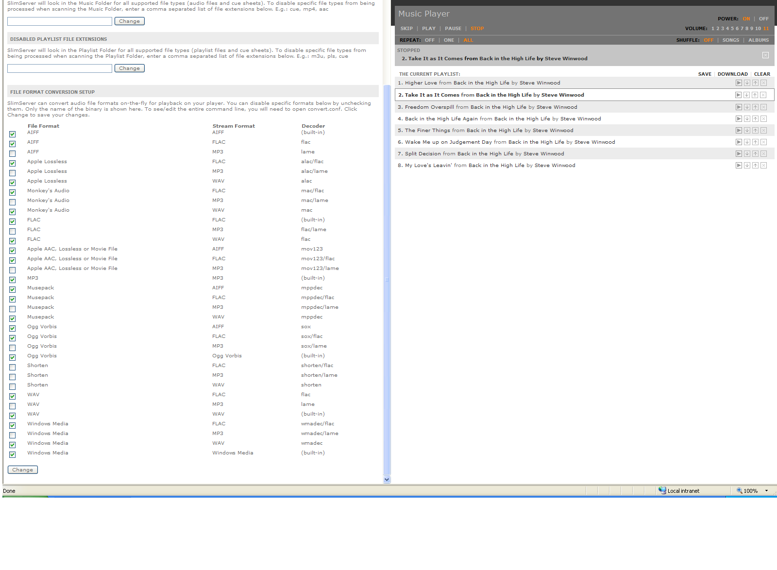 Robert, We would like one more log if you don't mind. Please stop your SlimServer and type this from the command prompt (Start -> Run -> CMD): C:\program files\slimserver\server\slim.exe --d_source --logfile=C:\wmadecmanuallog.txt Then play a WMA lossless file and let us know if it works, either way please attach said log. Thank you for your patience and understanding.
