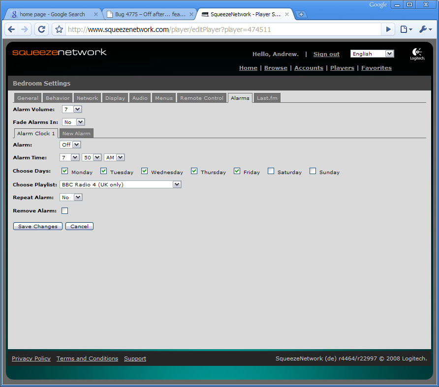 Apologies if I'm missing something, but I can't see this functionality in SqueezeNetwork. Can't see anything about it at all - screenshot of what I'm seeing under the Alarms tab attached. Re-opened in line with Max's recommendation.