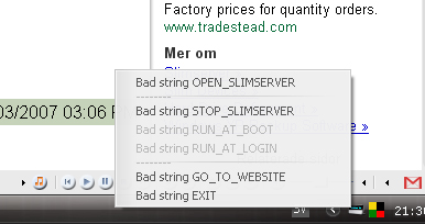 Error "Bad string Stop" when you right click Slimtray