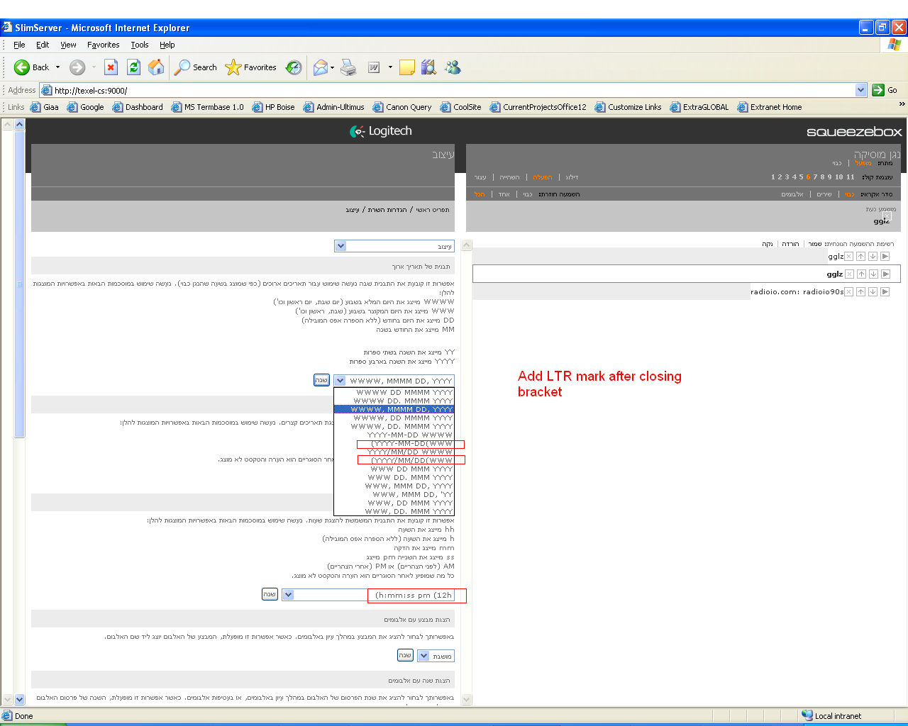 Issue found by translators testing Hebrew version of SlimServer. Using either May 12 or May 13 2007 version. Michael H suggested deferring to post-6.5.2. Reassign to Michael H. Screenshot appended with issue circled.
