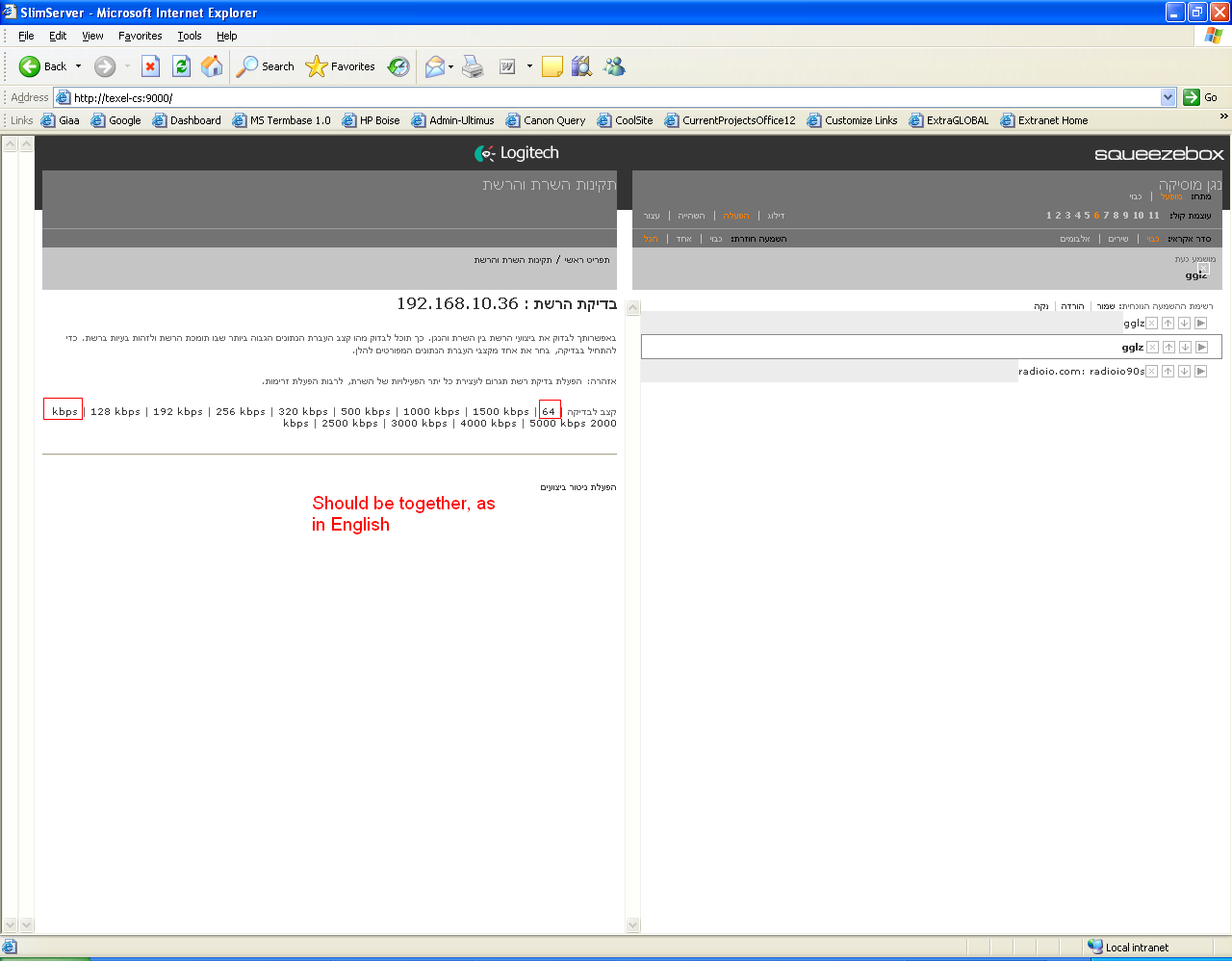 Issue found by translators testing Hebrew version of SlimServer. Using either May 12 or May 13 2007 version. Michael H suggested deferring to post-6.5.2. Reassign to Michael H. Screenshot appended with issue circled.