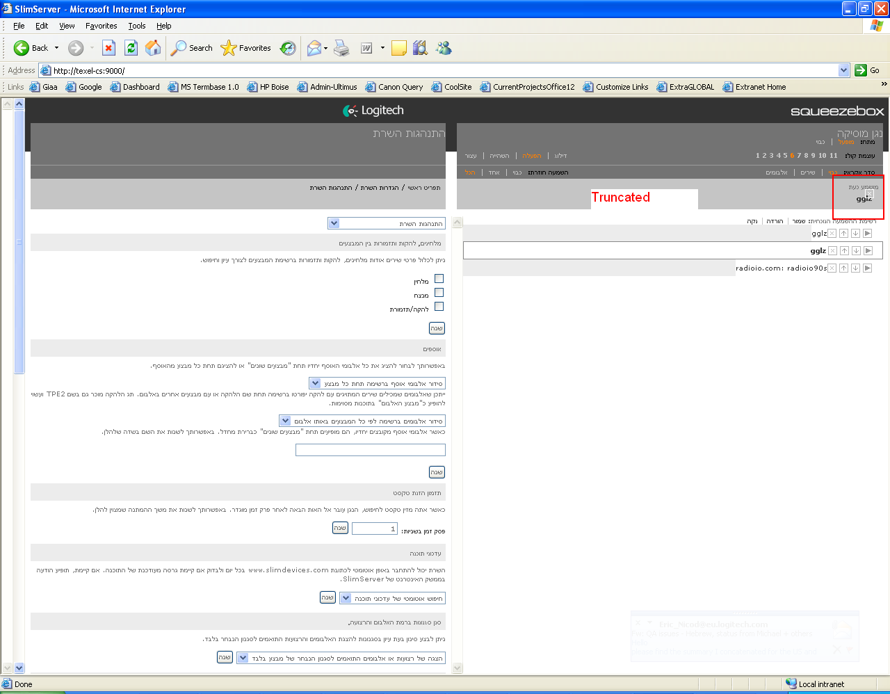 Issue found by translators testing Hebrew version of SlimServer. Using either May 12 or May 13 2007 version. Michael H suggested deferring to post-6.5.2. Reassign to Michael H. Screenshot appended with issue circled.