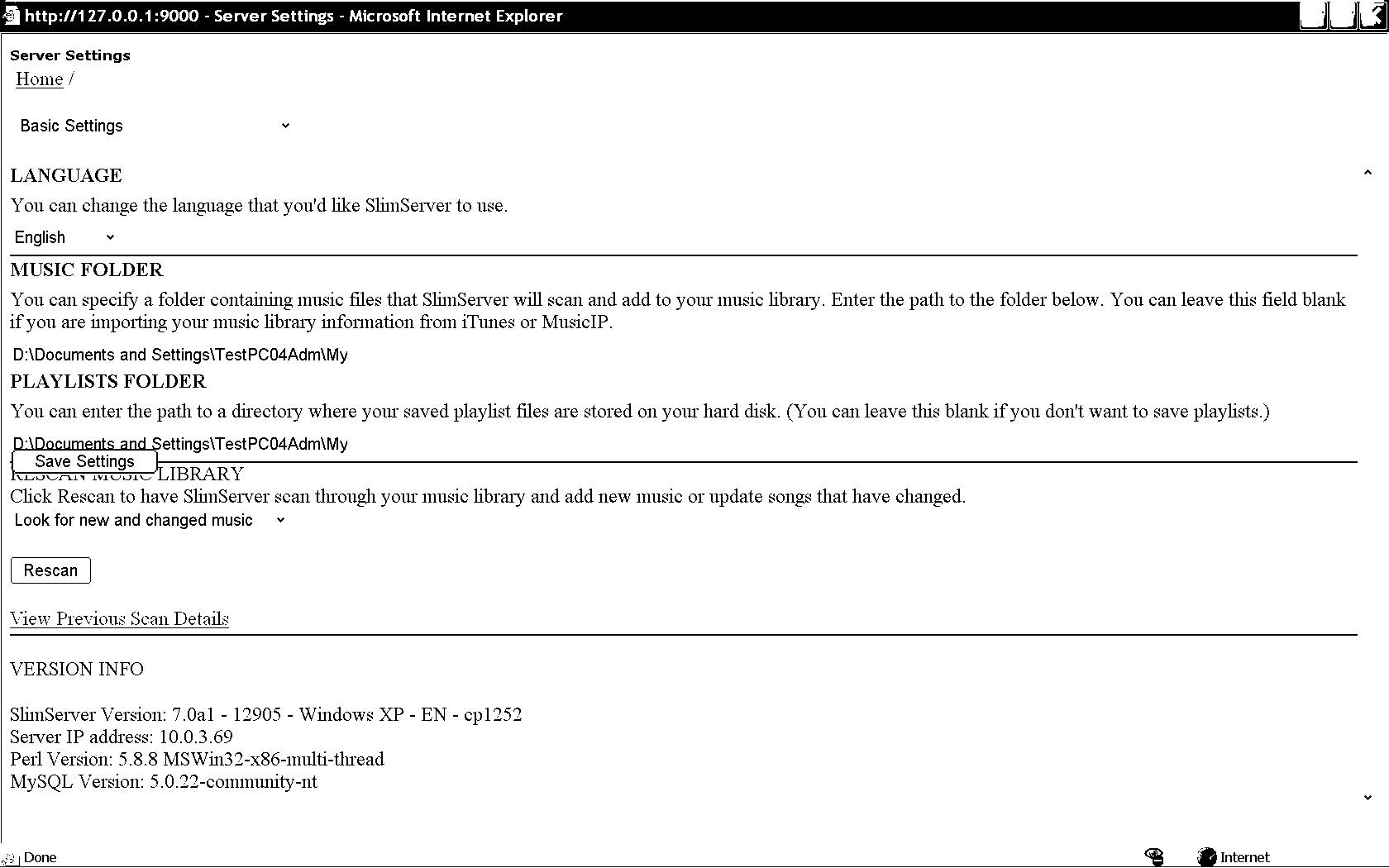 System Info: Gateway, P4, 1.97 GHz, 1.25 GB of RAM, XP SP2 ENU VERSION INFO SlimServer Version: 7.0a1 - 12905 - Windows XP - EN - cp1252 Perl Version: 5.8.8 MSWin32-x86-multi-thread MySQL Version: 5.0.22-community-nt Steps to Reproduce: 1. Start SlimServer. 2. Click the "Server Settings" button on the right bottom to brign up the "Server Settings" page. 3. Notice sometimes the "Save Settings" button is in the middle of the page and blocking other things. It does not happen all the time, but frequent enough to be annoying.
