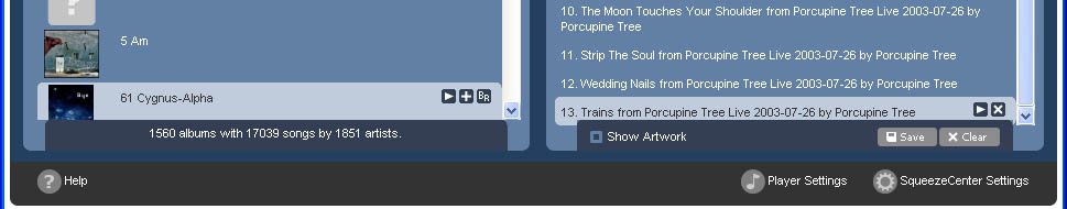 In the new Default skin, the panel at the bottom of the current playlist (containing the Show Artwork checkbox, Save and Clear buttons) overlaps the Current Playlist. This is not the case with the browse music list on the left hand side, where the n albums with n songs by n artists panel does not encroach the list of songs. I see the same effect with IE7 and FF.