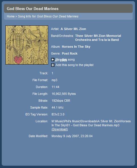 This is browser independent. I'll upload examples with FireFox and IE7. If I have short song info values (eg. Artist=Radiohead, Album=In Rainbows, Genre=Progressive Rock, Year=2007), and shrink the width of the browser, this has the same effect as using long titles with a wider browser window. Note also in the screenshot what happens with the Now Playing panel - the volume control runs off the page.