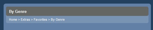 Broswing Favorites > Some Favorite places an extra link in the breadcrumbs. Hom > Extras > Favorites > By Genre "Extras" isn't part of the hierarchy. This appears to be only happening in the Default skin, as EN and Classic don't do this.