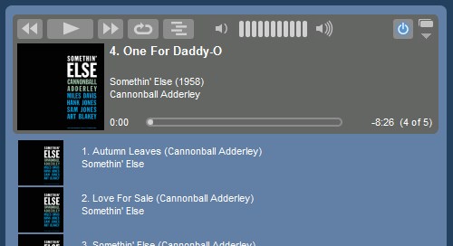 In the top player control panel, the order of song information displayed from top to bottom is TITLE, ARTIST, ALBUM, which is fine. In the playlist, the order is TITLE, ALBUM, ARTIST. Instead it should be the same as above. (I'm using TITLE rather than "DISC-TRACKNUM. TITLE" for Title Format). SC7 nightly 11/4 on Fedora 7 Firefox 2.0.0.9 on Mac OS 10.4.10