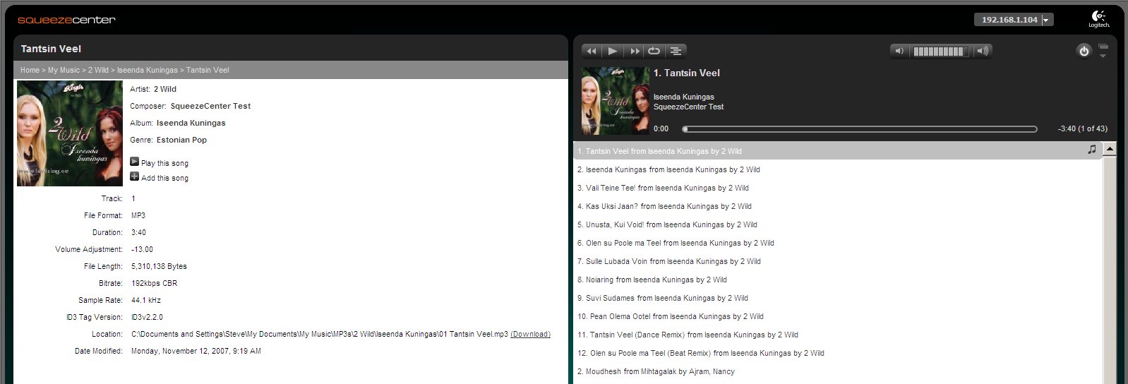 The attached JPG shows the error, which is in the upper Now Playing part of the playlist panel. As you can see from both the Playlist and the Song display to the left, the Artist is "2 Wild". I have inserted a dummy Composer "SqueezeCenter Test", as can also be seen in the song display. The Now Playing display says "SqueezeCenter Test" in the Artist line. If the song does not have a Composer, the Now Playing panel correctly displays the Artist. This displayed correctly in all versions I have tested on or before 11/8 (14406), and incorrectly after that starting with 14539. The fix for bug 6094 was betwen these two versions, and it is related to the Artist display, so I think you are definitely right about this fix being the cause of the problem. I would propose that you should not display the Composer in this area.