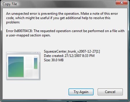Mike, i just want to report after setting SqueezeCenter Option, no more problem. I have tried the third time (shutdown, restart, run SC), SC run extremely steady, stable now. Thanks. Why I can run SC without problem before nightly build 21 Dec without setting SqueezeCenter Option? Just curious.