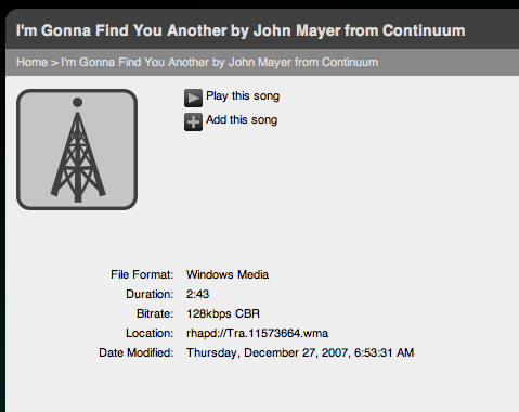 The drill-down version is xmlbrowser.html, the linked from the playlist is songinfo.html.