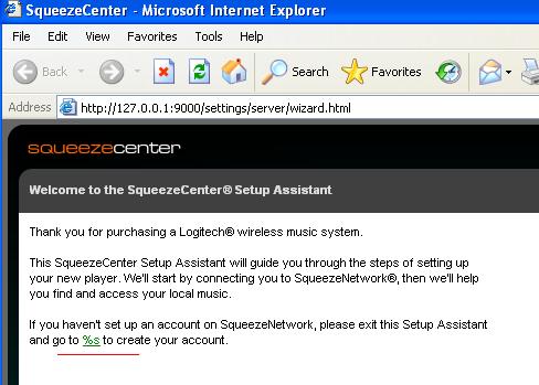 Link to SqueezeNetwork shows up as %s in setup wizard