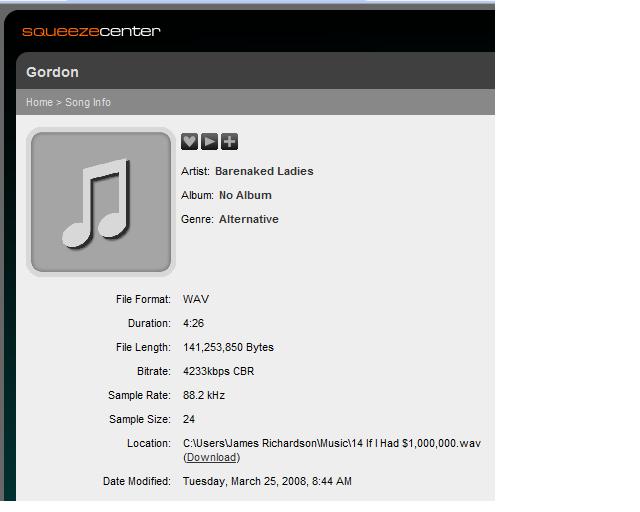 Created attachment 3128 [details] BUG6920 Reference bugs 4712 / 4780 - related but not duplicate. Tested with SqueezeCenter Version: 7.0 - 17793 - Windows XP - EN - cp1252 (release version) WAV files encoded at 88.2kHz 24-bit WMA displayed & played properly for me. See attached Robert: Would it be possible to have you attach one of the WAV files (or a short sample) that you see the problem on; as well as a screen shot of where you are seeing the issue.