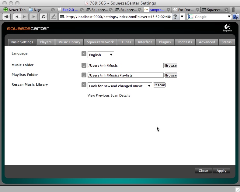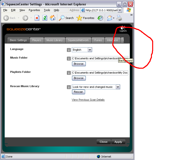 When looking at the Settings Page, with a window less then 1024x768, there are many "tabs" missing. The window does not populate Scroll Bars allowing me to see the missing tabs. I.E. the window does not resize well OR block the user from resizing the window to a "minimum" size. The same thing happens if the user resizes the main SC page (home). The player Controls are missing or messed up. If we don't want scroll bars to appear, then the window should auto-lock to a set minimum size. See screen shots This happens in I.E. 6.x / 7.x as well as FireFox 2.x